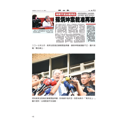 蘇案正是如此。有很長一段時間,大家避免(或拒絕)提及蘇案,而且不只是迴避討論,沒有人願意承認自己迴避。蘇炳坤無罪的事實鐵錚錚地擺在眼前,大家都知道是怎麼回事,卻沒人想多費唇舌,反正說了也未必被當成一回事,還可能被視為麻煩製造者。
