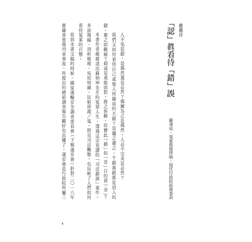推薦序:「認」真看待「錯」誤/羅秉成(冤案救援律師,現任行政院政務委員)