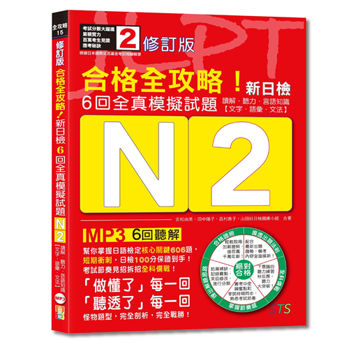 為了幫您贏得高分,《修訂版 合格全攻略!新日檢6回全真模擬試題N2【讀解.聽力.言語知識〈文字.語彙.文法〉】》分析並深度研究了舊制及新制的日檢考題,不管日檢考試變得多刁鑽,掌握了原理原則,就掌握了一切!