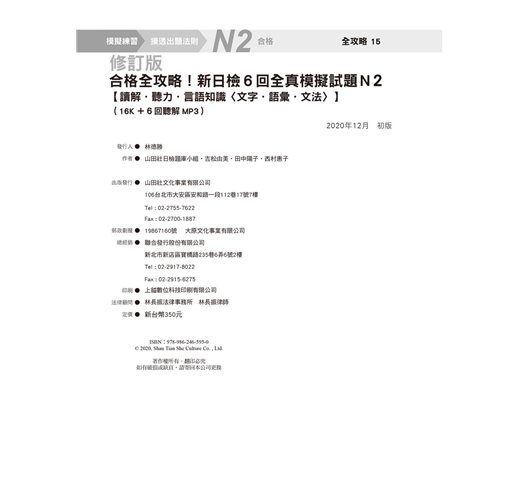 《合格全攻略!新日檢6回全真模擬試題N2》修訂版正式上市!