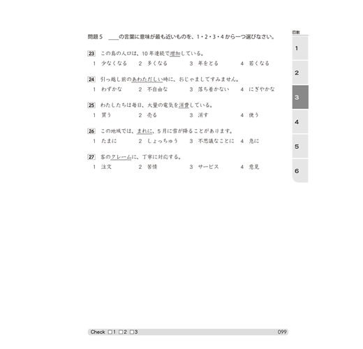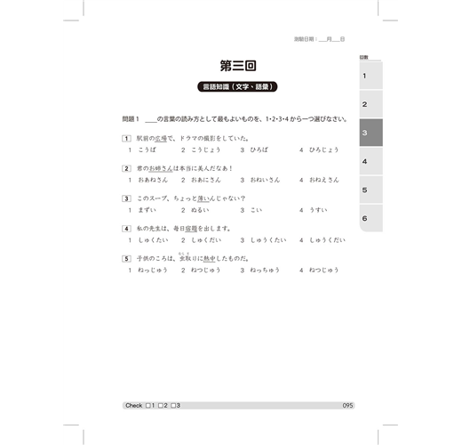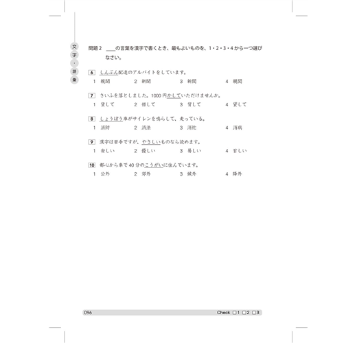 為了讓您有真實的應考體驗,本書完整輯錄「6大回合超擬真模擬試題」,完全複製了整個新日檢的考試配分及題型。請您一口氣做完一回,不要做一半就做別的事。考試時要如臨考場:「審題要仔細,題意要弄清,遇到攔路虎,不妨繞道行;細中求速度,快中不忘穩;不要急著交頭卷,檢查要認真。」