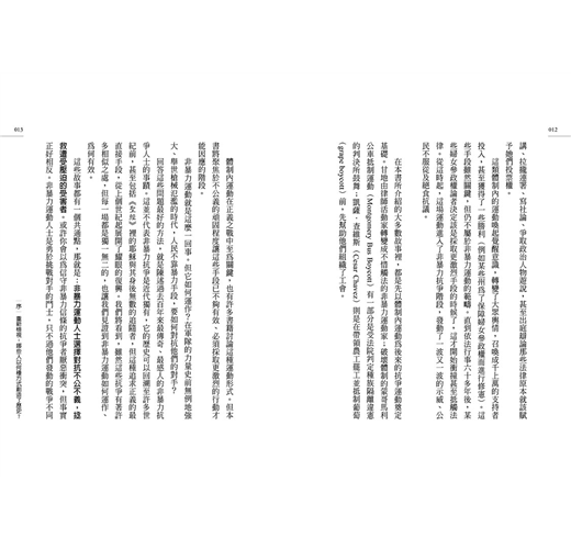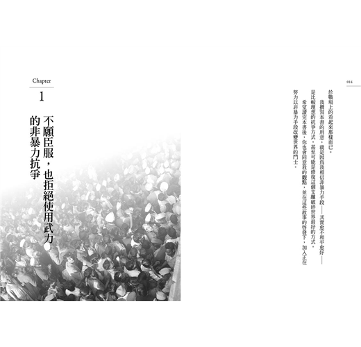 我撰寫本書的用意,就是因為我相信非暴力手段──其實越不和平越好──是比較理想的抗爭方式,甚至可能是修復這支離破碎世界最好的方式。