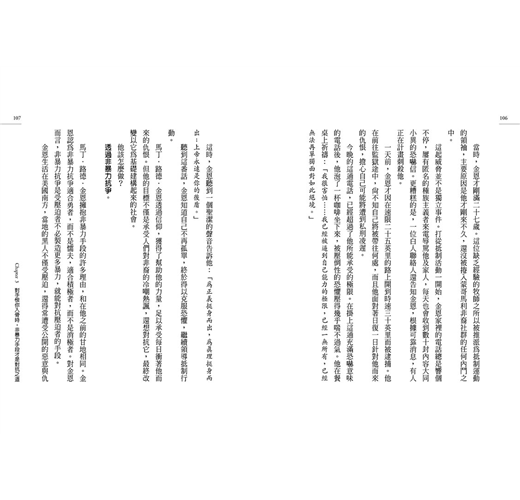 作者相信,非暴力手段越不和平越好,拒絕暴力但歡迎衝突,