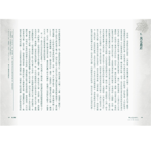 ★內頁以特選「大地棕」、「湖泊綠」雙色印製,專屬瓦爾登湖的閱讀美感