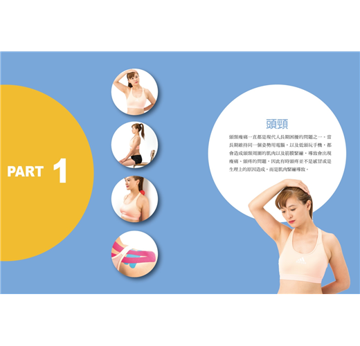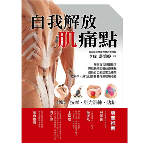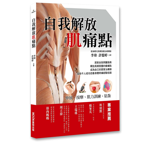 現代人生活緊張,每個人都有筋骨痠痛的問題,然而緊湊的生活步調、新冠肺炎的疫情讓人無法也不敢一天到晚往醫院跑。很高興能夠看到這本書,書中所提到的伸展、肌力訓練、自我肌筋膜放鬆和肌能系貼紮的應用,都能幫助我們自己解決身體上的痠痛改善體能。但是拉筋動作、肌力訓練到底該怎麼做,做幾下、做多久、動作上有沒有什麼細節需要注意,才能避免二度受傷,這些重要的小事,書中都有清楚而完整的呈現,並且找了治療師來擔任模特兒,負責全書的動作示範,相信讀者看完後,更能正確操作各項伸展或肌力訓練,增加許多日常保健知識,遠離痠痛,也能照顧身旁的親朋好友。憶婷和李瑋兩位臺灣肌能系貼紮學會講師在撰寫此書時,除了自身物理治療及職能治療的專業外,更融入肌能系貼紮、自我肌筋膜放鬆技巧、身體感知等概念,用多元的面向提供給讀者各種居家保健方法,這是目前市面上各類保健書籍中少見結合理論與實務的好書,真心推薦給各位重視自我健康的讀者。
