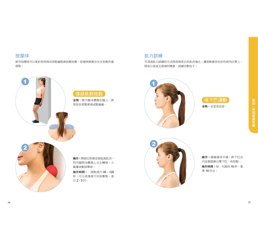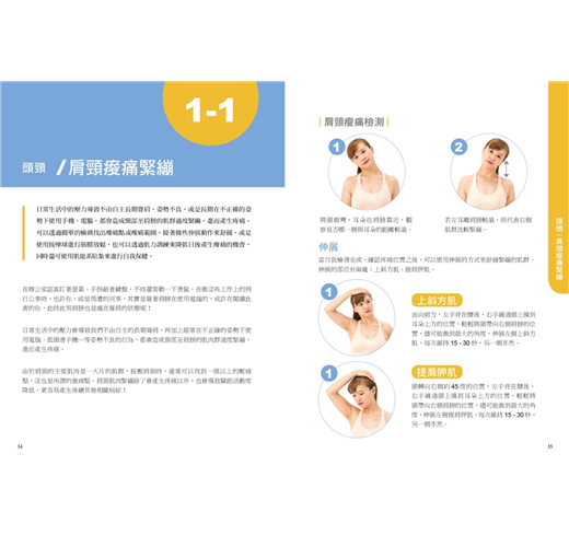 人體的肌肉筋膜很奇妙,當我們因為長時間維持在同一種姿勢,身體的肌肉便處在一個比較拉長的位置上,時間一長肌肉會變得疲乏,就像橡皮筋一直被拉長著,久了橡皮筋就會疲乏;若是長時間處在一個縮短位置,肌肉也會因為這樣變得短縮,等我們要使用它時,肌肉的彈性跟長度就會不足,因此感到緊繃。另外,當我們重複性使用某條肌肉、某些肌群時,可能會超過肌肉原本有的能力,而產生微小的肌肉撕裂傷,開始發炎、變得緊繃。也就是說太少動也會痠痛緊繃,動太多也會痠痛緊繃!隨著現代人健康生活的意識抬頭,越來越多人縱使運動生活,或是學習更多自我保健的方式,例如肌力訓練、伸展技巧、筋膜放鬆、肌能系貼紮、健康飲食、了解疼痛、精油按摩等。這本工具書就為每一種問題一口氣帶來四種解決方式:伸展、肌力訓練、筋膜放鬆、肌能系貼紮,每個人可以選擇自己想要的、合適的方式來進行。透過簡易的文字、清楚的圖片,讓使用者可以像查字典一樣,透過不同查詢方式來找到自己的問題,如果你知道自己的問題是什麼,那你可以直接從目錄查詢,但如果你不清楚自己是什麼問題,只感覺不舒服的位置,那可以藉由圖片來快速搜尋到書中相關的說明。在開始使用這本書之前,希望大家能先了解這些自我保健方式的背後原理,才能更有效且正確的使用這些技巧。