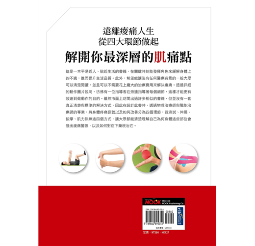 《自我解放肌痛點》本書希望提醒讀者重視身體痠痛,讓疑惑化為行動,及早的恢復健康。全文附有詳實圖文,不論是關於運動傷害預防或是職業上常見酸痛的問題,或是幫助自己針對痛點放鬆,對症下藥解決長久身體痠痛帶來的問題。《自我解放肌痛點》本書將是針對人體上、下半身尋找解決方案的首選參考。