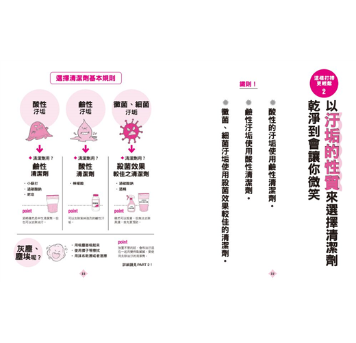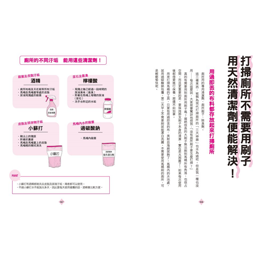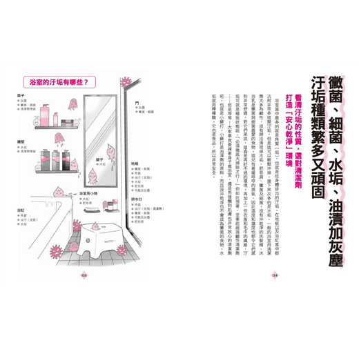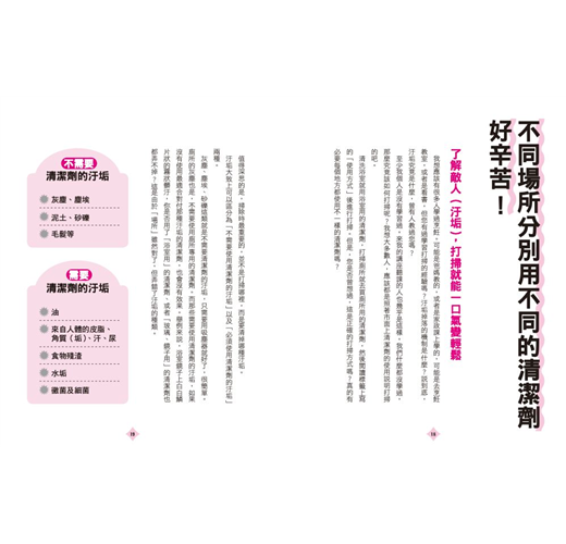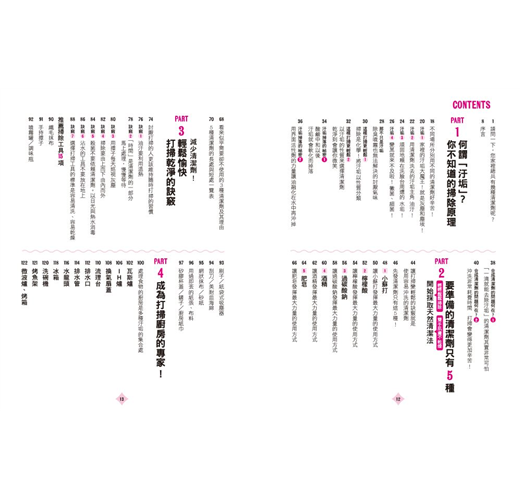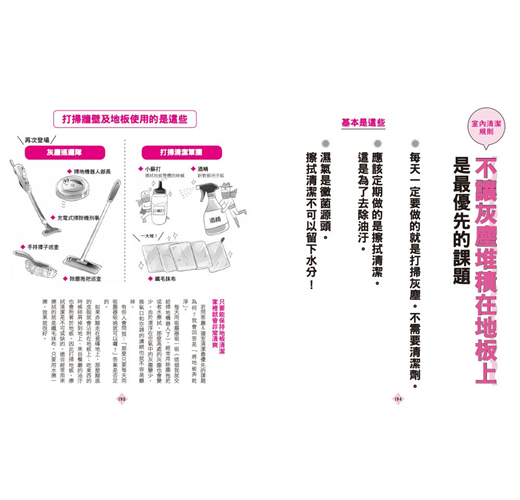 包括如何選擇打掃用品、預防髒汙的訣竅等等。