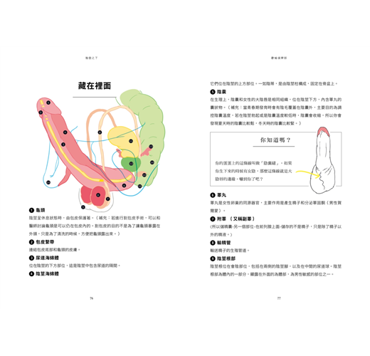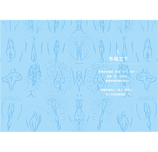說到性別,你會在閱讀過程中發現,我會用奇妙的外號稱呼本書的主要角色。那邊、那話兒、那裡,這些名稱自動去性別化,因為即使世界以非常二元化的方式構成,我們的認知中男人有陰莖、女人有陰道,但還有雙性人、跨性別者、非雙性戀者、性別流動者、無性者、自認為跨多種性別類型者……等等。也許這些會徹底顛覆我們的習慣,因為跨性別認同的能見度極低,但即使他們是少數族群,也不代表這些人不存在。我希望在這裡人人都能感覺自在有趣。因此在本書中,那話兒有陰莖,那邊有陰道,那裡可能兩者皆有。