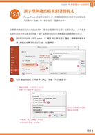 每個範例內容皆有作品展示、重點說明、範例執行與延伸練習,依循順序學習,短時間內即可成為簡報高手。