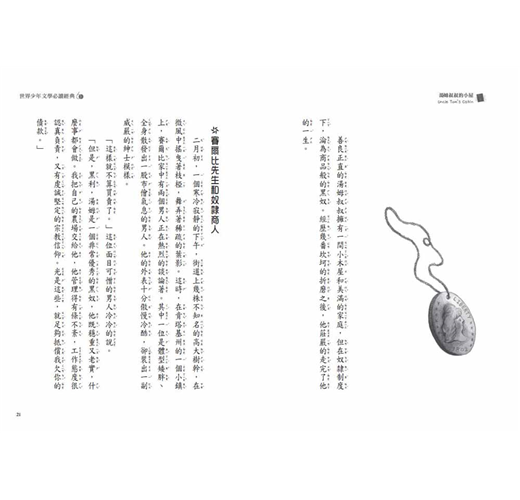 《湯姆叔叔的小屋》最初在主張廢奴的美國《國家時代》雜誌上連載,引發廣大迴響後在一八五二年出版成書,一躍成為十九世紀全美最暢銷的小說,銷售量僅次於聖經。在那個年代,買賣黑奴不但合法,且多數黑奴受到極不人道的對待,致使許多人甘冒生命的危險逃往加拿大,只為獲得自由之身。堅信人生而平等的女教師史杜威夫人希望透過小說的型式,讓世人看到蓄奴的殘酷真相,沒想到竟成為撼動十九世紀美國政治的一部文學作品,甚至讓林肯總統在接見史杜威夫人的時候說了:「原來你就是那位引發了一場大戰的小婦人。」讓我們看到文學改變世界的動人力量。