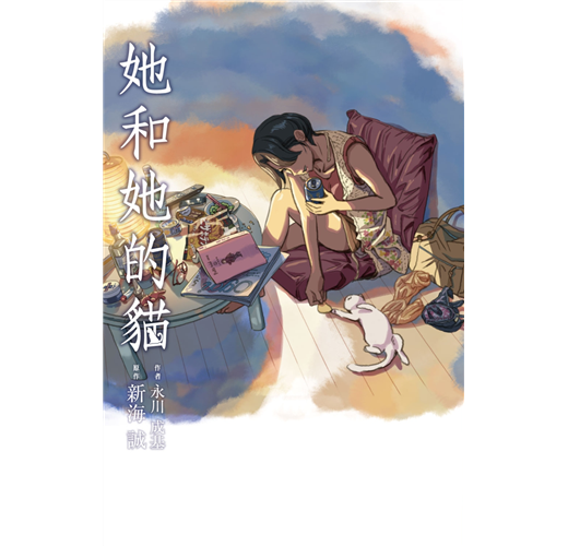 女子拙於用言語表達自身情感,貓兒在她的身旁默默地守護著。