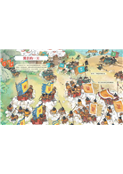 扉頁──熱鬧滾滾的華麗舞臺∣每位主角出場都有氣勢浩大的場面,在最開始的「扉頁」會以一個跨頁全景與一段前言深入介紹當天的主角,讓你認識這位人物的事蹟、知道會走什麼路線,了解當天體驗的行程表。