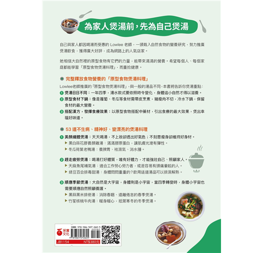 ◎完整釋放食物營養的「原型食物煲湯料理」Lowlee老師推廣的「原型食物煲湯料理」,與一般的湯品不同,本書將告訴你煲湯重點: