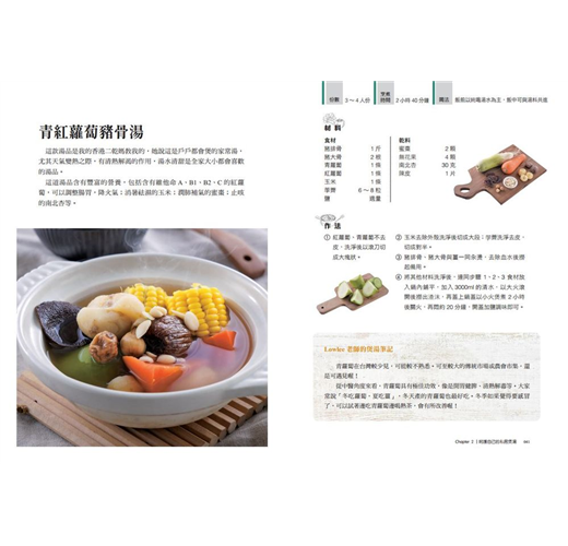 ◎55道不生病、精神好、變漂亮的煲湯料理1、美顏纖體煲湯:天天喝湯,讓Lowlee老師不上妝卻透出好氣色;不刻意瘦身卻維持好身