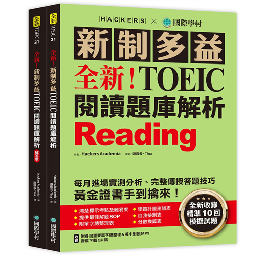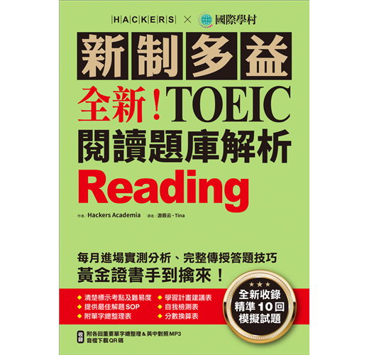 1. 由韓國最有口碑的多益破解機構 Hackers Academia,每月進場實測分析,打造10回最真實考題