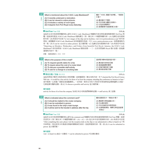 2. 全新編寫完整10回閱讀試題,提供最大量練習。不論題目多複雜,都能答題成為反射動作