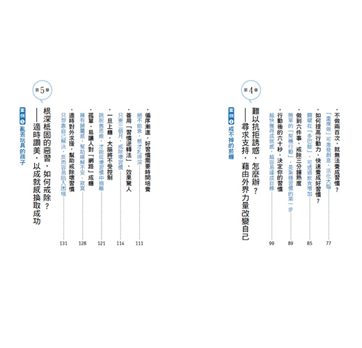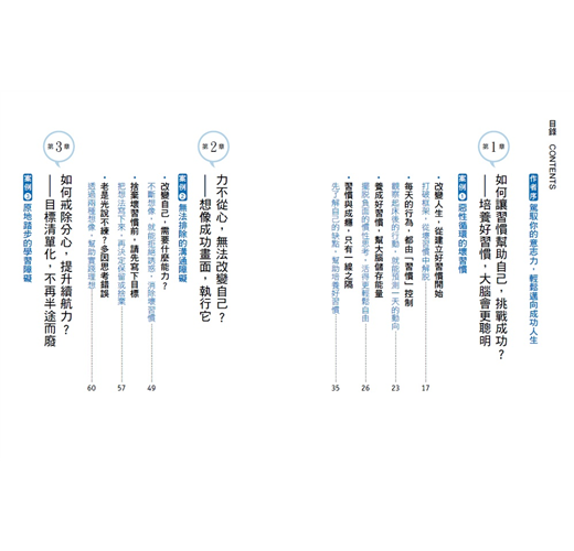 在各種活動當中,我常聽見學員提到,修習課程剛開始時,狀態的確稍有改善,但是不久後便又盡復舊觀。這是因為學員並未把新知識扎根於腦海,使之形成「習慣」。關於這部分,本書將屏除所謂的「毅力論」與「精神論」,純粹以科學的角度與理論,提供養成好習慣的祕訣。