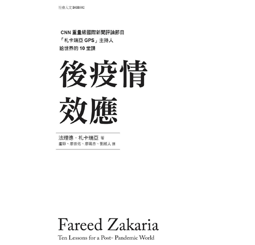 瘟疫肆虐的此刻,札卡瑞亞在這部來得迫切又及時的著作中,預言了後疫情時代的世界本質。疫情對政治、社會、科技、經濟等領域所造成的影響,很可能數年後才會真正顯現,他的論述將幫助我們理解疫後的世界樣貌。