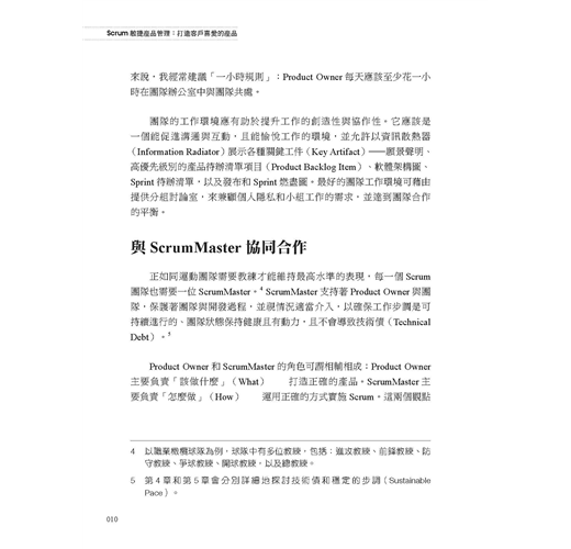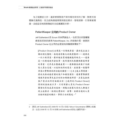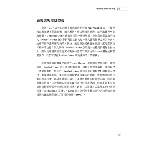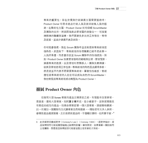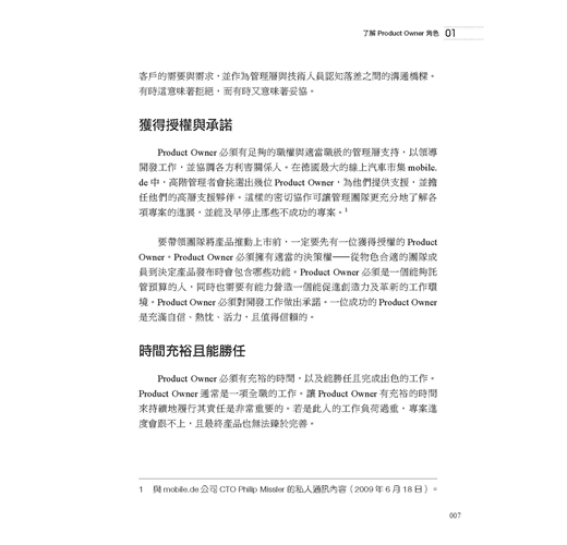 ・了解Product Owner角色:Product Owner的職責為何、該如何執行,以及令人意想不到的背後意涵。