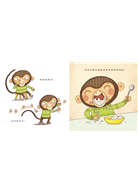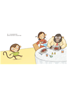 當天餐桌上,猴子爸爸開始瘋狂打嗝,媽媽則一直大聲地放屁!甚至連年幼的妹妹也開始挖起自己的鼻孔……當看到小猴子驚嚇連連、再也受不了而忍不住出聲抗議的一幕時,讀者想必會跟餐桌上的小猴子家人一樣,都忍不住想竊笑吧!(嘿嘿,小子,終於輪到你崩潰了吧?)