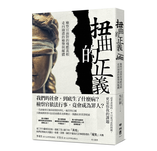 《扭曲的正義》作者吳忻穎,是一位前檢察官。在本該實現刑事正義的檢察體系中磨滅了希望,最後失望出走。她回望過去任檢察官的實際經驗與觀察,深刻剖析了檢察體系、警察體系、媒體的重大問題,有系統地暴露三方之間如何往來、影響視聽。