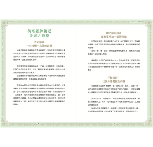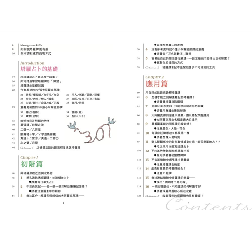 從「基礎篇」、「應用篇」、「排除障礙篇」、「高階篇」、「實踐篇」一步步奠定塔羅解讀階梯,擴充腦中載體。