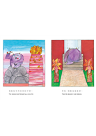冬冬說:「媽媽,院子裡有一隻怪獸要吃我。」媽媽說:「冬冬,等一下!」。圖畫部份媽媽忙家事澆盆景,冬冬一副譁眾取寵的樣子,指著院子。冬冬兩手插在口袋裡,二眼發直,下階梯到了院子,對怪獸說:「嗨!怪獸!」怪獸把冬冬吃到肚子裡去,這幅畫是故事的高潮。