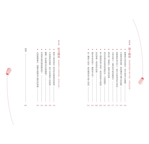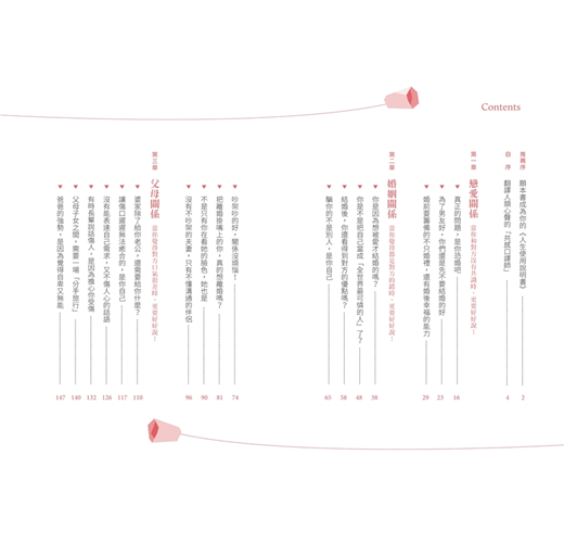 從戀愛、夫妻、婆媳、親子、職場等面向,摘錄出常見的關係困境,