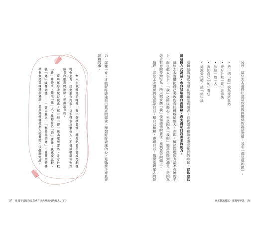 「關係裡的誤解多到不可勝數,你相信嗎?而這一切的源頭,就是無法好好說話。身為父母語言翻譯機的我,讀到這本書,實在心有戚戚焉。看穿語言底層的動機與情緒,學會好好說話,別把關係交給命運,主導權立即拿回手裡。」