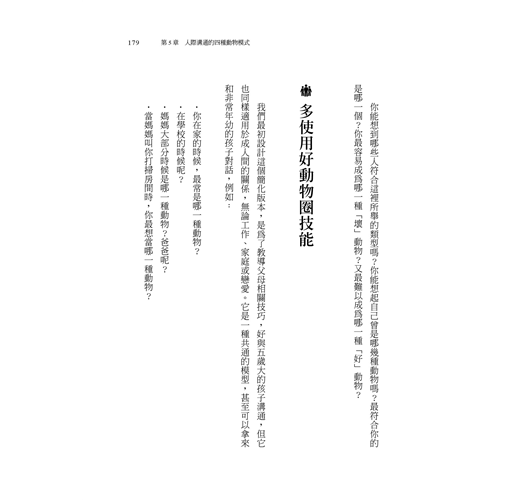 第二個層面是掌握四種基本的溝通方式,我們會使用代表動物來說明其內容:
