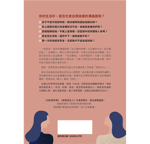 ◆ 多希望這本書在我求學前就已存在、在我第一次談戀愛前就已存在、在我從事警務工作前就已存在、在我成為人質和危機談判專業人士前就已存在。如果想要有更好的溝通品質,你應該閱讀它,甚至應該將這本書送給你所愛或共事的人,因為當彼此的溝通更順暢,生活就會更輕鬆。