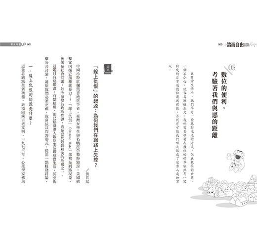 ˙針對各項議題,精心設計開放性的問題,適合師長與學生相互討論,建立獨立的觀點,培養論述的能力。