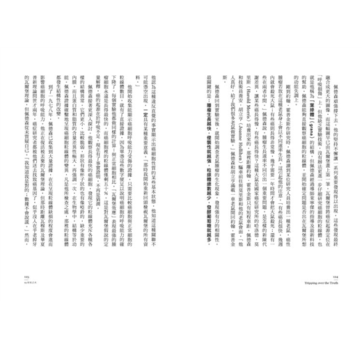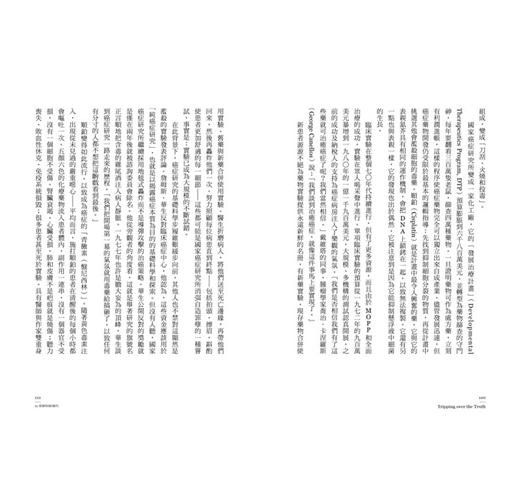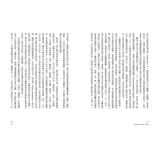 作者廣泛與癌症研究者做深度訪談,如《癌症代謝療法》的作者賽弗瑞博士(Thomas Seyfried)、約翰・霍普金斯大學醫學院的佩德森博士(Peter Pedersen)等,以豐富的敘事內容和嚴謹的科學論據,讓我們了解那些繁雜細小的事件如何像共謀般坐大這個惡性毒瘤,讀來就像偵探小說,充滿曲折和謎團,也不乏盲目的死巷和令人振奮的時刻。