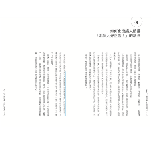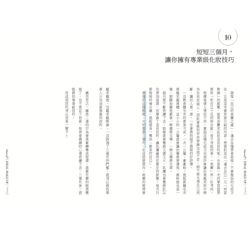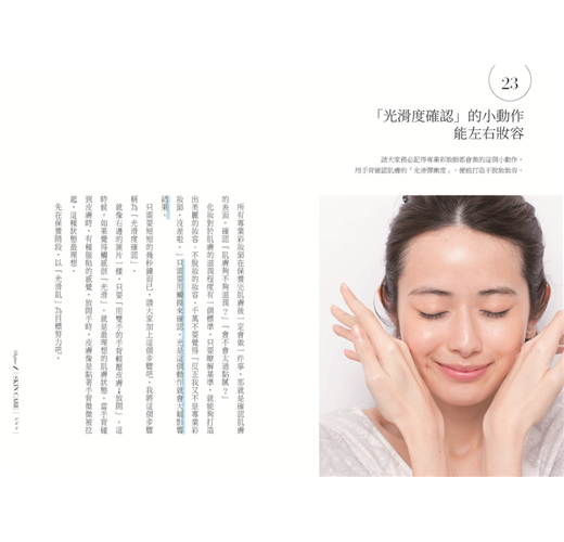 只要將這些技巧學以致用,無論是忙碌的日子、臉色差的早晨、隨著年紀增長的變化……都完全不用害怕。來上過我課程的學員們,原本相同的一張臉漸漸變得清爽、容光煥發,全都歸功於能夠應變所有情況、維持美麗的基本功。我一直在思考如何將自己在專業現場獲得的經驗,傳授給非專業領域的人們,這本書將毫不藏私地介紹所有技巧。請大家依照書中的指示,沒有一個步驟是毫無意義的。