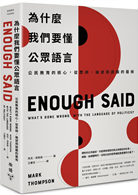 「馬克.湯普森精闢的分析了我們被過度簡化的公共語言。本書揭露了當今真相崩解、充斥著『仇恨、憤怒及謊言』的社會,令人驚喜,振奮人心。」