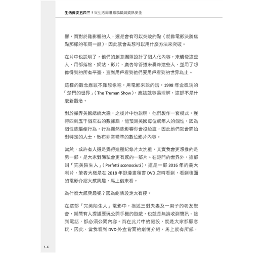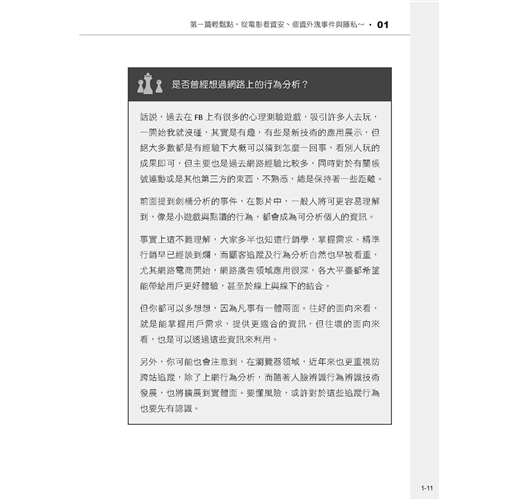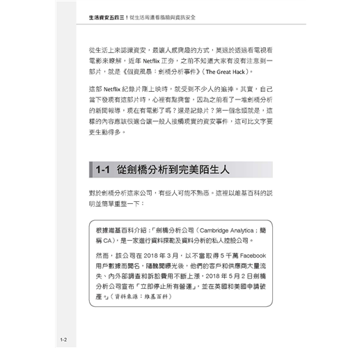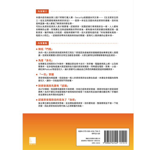 ■「一次」掌握:資安領域面向相當廣,但這些給一般人的資安資訊往往散在各處,本書從多個面向與角度切入,讓你一次就能得到不同收穫。