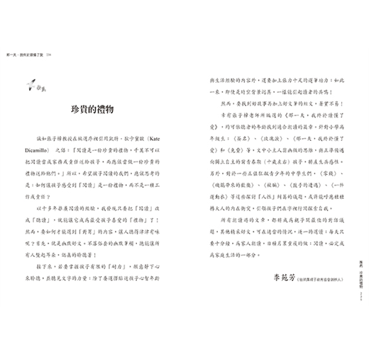 每個故事都是一道靈光、一份感動,讓讀者領會「親情的包容與寬恕」、學習「關愛他人的巧思」、擁有「反省自己的勇氣」、培養「身處困境也能給人希望的智慧」。