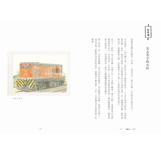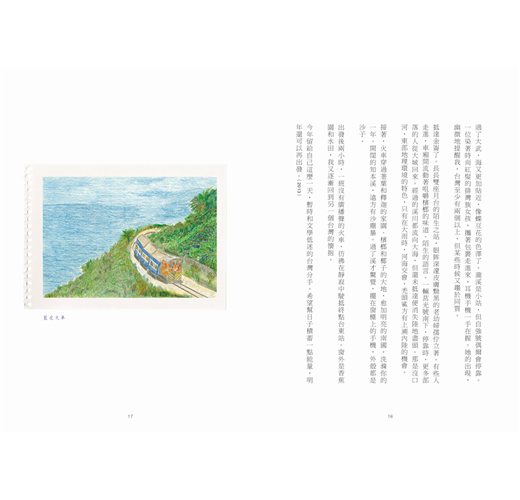如今看著一站站的插圖,不良於行的她,彷彿跟我都去過了。縱使這些畫是如此愚騃、笨拙,但裡面都藏著對我的,旅行之想像和平安。或許,這也是火車旅行最美麗的情境。