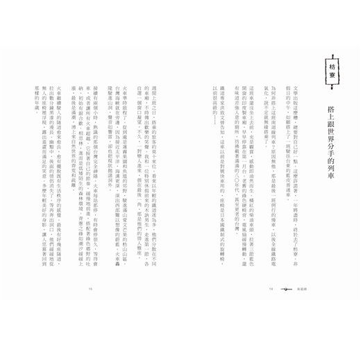 唯有劉克襄,才能描繪出這麼多元,網路上google不到的鐵道風景。風景意欲成林,需要長時的累積和呼應的因緣。作者的筆宛如神通廣大的濾鏡,信手拈來,每一個車站都變成了怦然憧憬的遠方。