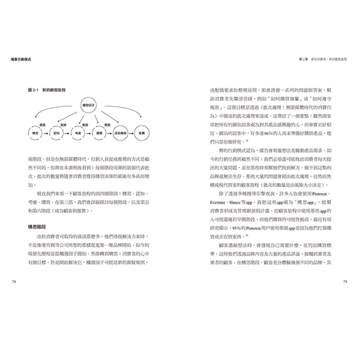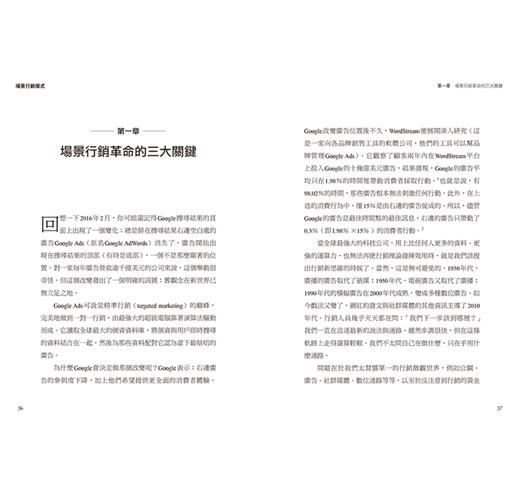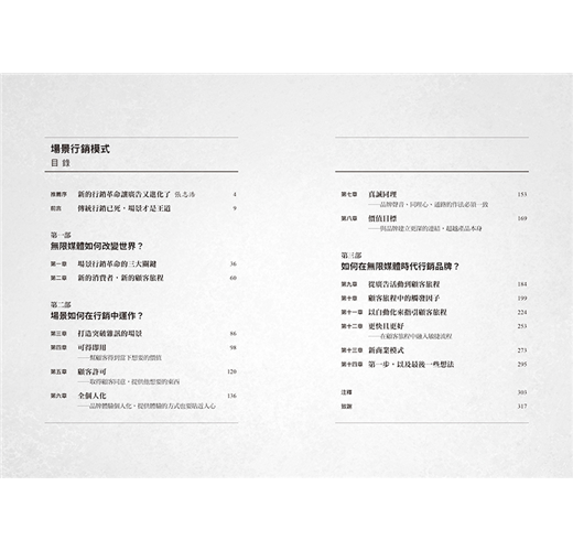 書中舉出不少生動的例子,印證當前卓越品牌如何善用這個全新的行銷模式,締造驚人成長。例如,賓士汽車的廣告預算是特斯拉的150倍,擅用場景行銷的特斯拉汽車銷售量卻是賓士的三倍。最後,作者提出一套完整的執行步驟,以及能有效觸及消費者的新工具、新技術。