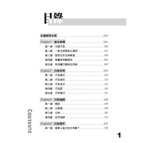 行政法範圍浩瀚無邊,這次就別再費心到處蒐集考點了。這本書就是妳/你最好的選擇,因為我們把面對一試考題必須具備、反覆出現的「法條、基本法理、實務見解還有歷屆考古題」通通放在同一本書了,還按照教科書的體系編排,讓讀者念完每個章節,就能馬上練習對應題目、享受細心詳解,給妳/你強大信心前往考場!
