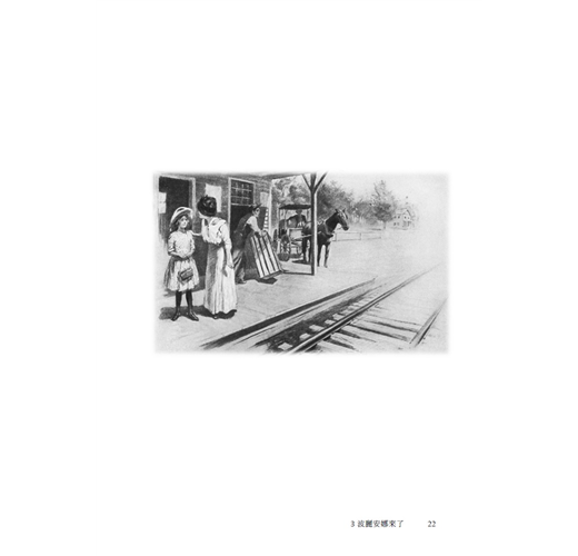「有,波麗姨媽,我有帶行李。我有一個漂亮的行李箱,是婦女勸助會買給我的。裡面沒裝什麼東西――我是說沒裝多少我自己的東西。最近捐獻物資中適合小女孩穿的衣服比較少;但行李箱裡裝了爸爸所有的藏書,懷特太太說,她覺得這些書應該要全部交給我,您看,爸爸……」