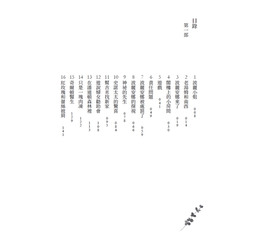 波麗小姐說完後便轉身走下通往閣樓樓梯間的走廊。她現在很高興自己當初安排這孩子住進閣樓小房間的決定,沒有做錯。一開始會這麼安排,只是想讓這個外甥女離自己愈遠愈好,同時也害怕她孩子氣的行為一不注意就毀了她價值不菲的家具擺飾。沒想到,這孩子才初來乍到,竟然就顯露出如此虛榮的性格傾向。真慶幸自己的安排,如此理所當然又合情合理,波麗小姐心想。