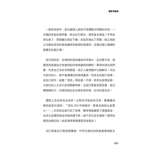這本書結合了我以前在科技業任職時所使用的「PQRDCM」思考方法,來解決人生的財務問題。
