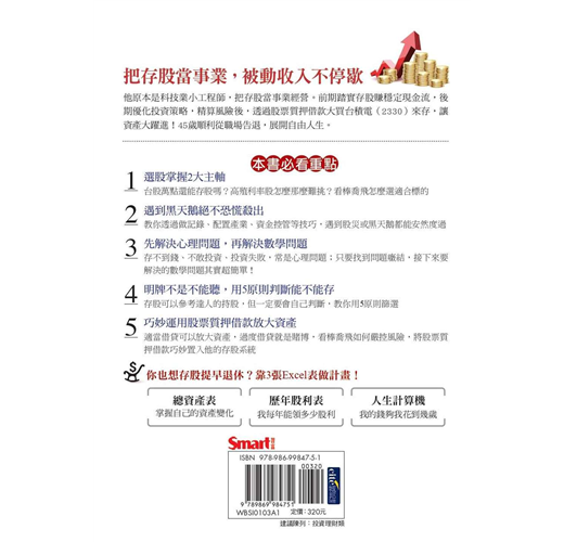 「傻多存股法」,就是相信股市會傻傻的一直走多頭;心裡有計畫,對市場抱持信心,鼓勵自己,讓投資計畫繼續執行下去的一種投資方法,這方法讓我用12年的時間到達到財務自由;這段過程中,我為什麼開始存股?靠什麼方法來存股?這些經歷和過程,都詳細記錄在這本書裡面,希望這本書能夠讓大家知道,一個平凡普通的科技業工程師,原來也能靠這樣的方法,不投機、不搶快,順利達到人生的理財目標。