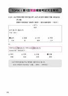 其中第一週是「聽力」、第二週是「閱讀」二大考試領域,分別有8個及11個題型,每個題型皆有「出題目的」及「題目類型」,讓考生在接觸到考題前,先認識該考科所有題型的出題方向。在熟悉了兩大考科領域的題型後,第三週「模擬考試」共有完整2回模擬試題測試自我實力。第四週「綜合診斷」針對前一週的模擬考試試題進行題目分析及診斷,了解自己對題目到底理解了多少!所有韓文內容皆有中文翻譯及解析,確實幫助考生理解題型分析內容!
