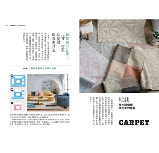在風格師眼中,布藝飾品是最能柔化居家拘束感的物件,而客廳不但是接待親友的對外領域,同時也是家人聯繫感情的重要場域,一張地毯將為整個空間帶來溫馨的情調!但為何別人家地毯擺起來就風情萬種,我們家擺起來就一點fu也沒有?