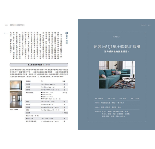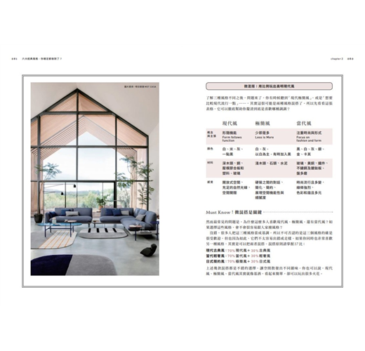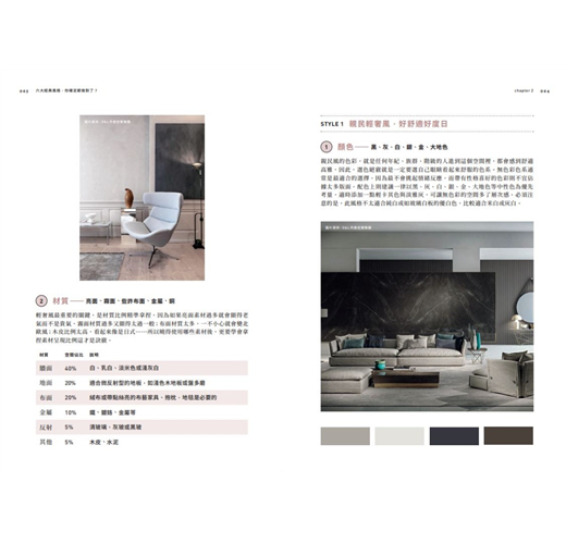 全書從北歐、工業、輕奢、現代、新美式、日系,元素、色彩、造型、比例、尺寸,幫你拆解剖析,深入說明,讓腦中的風格樣貌不再似是而非。此外,也協助你一次弄懂家具、燈具、櫃子、抱枕、地毯、畫作……8大明星軟件的特質與交錯搭配法則。書中還以實際案例步步詳解,透過完整思考過程,看空間如何形塑成功。
