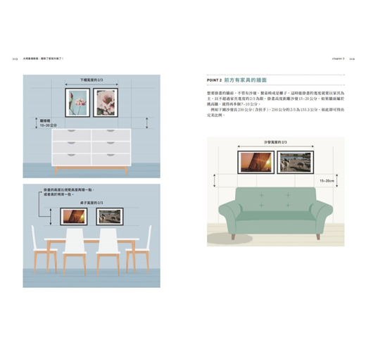 ▼牆面掛畫,寬度與高度規劃,前方是否有家具是關鍵!